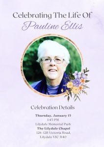 A service to celebrate and honour their time with us will be held at 1:00 pm on Saturday 17 January 2026 at Port Melbourne Yacht Club, 38 Beach Road, Port Melbourne.