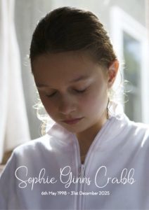 It is with deep grief that we tell you we said our final farewell to our beautiful Sophie Ginns Crabb at the very end of 2025.